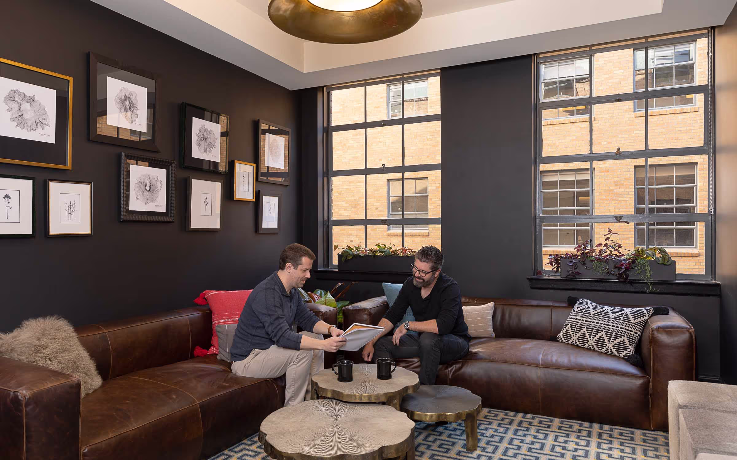 Sit back and ideate in Mackinaw. Appointed with leather sofas, low tables, and rich textures inspired by the room’s namesake - a historic Pacific Northwest garment originally made for workers in the timber industry.